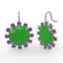 Ametist ve neon yeşil akrilik 14 ayar beyaz altın küpe