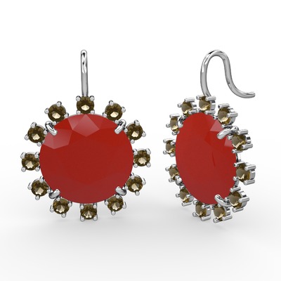 Dumanlı kuvars ve kırmızı akrilik 925 ayar gümüş küpe