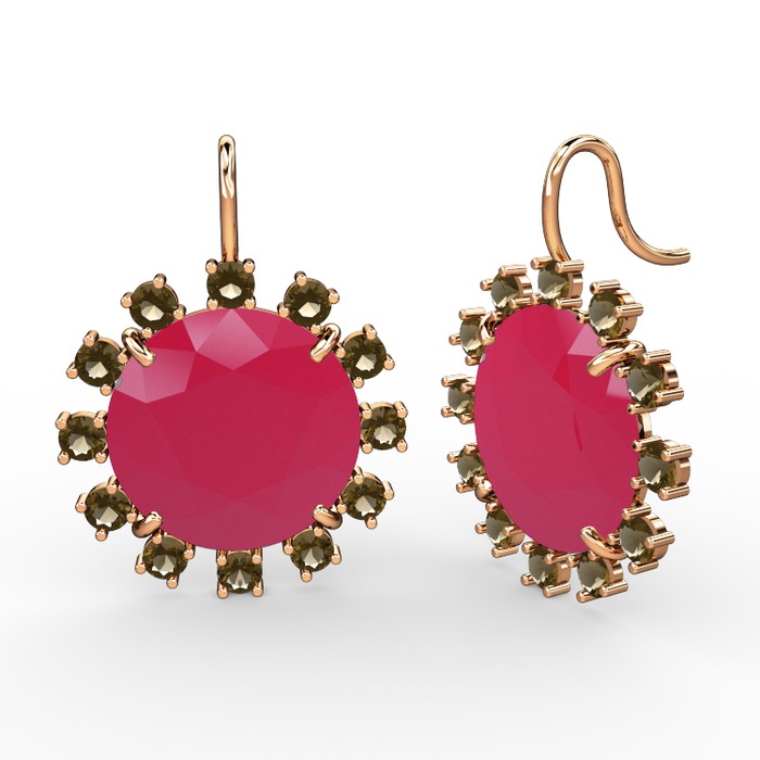 Dumanlı kuvars ve neon pembe akrilik 8 ayar rose altın küpe