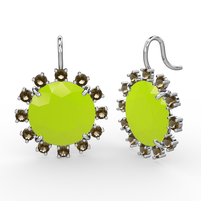 Dumanlı kuvars ve neon sarı akrilik 925 ayar gümüş küpe
