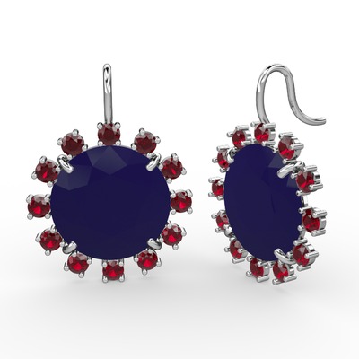 Garnet ve lacivert akrilik 18 ayar beyaz altın küpe