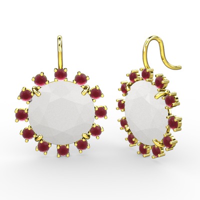 Kök yakut ve beyaz akrilik 8 ayar altın küpe