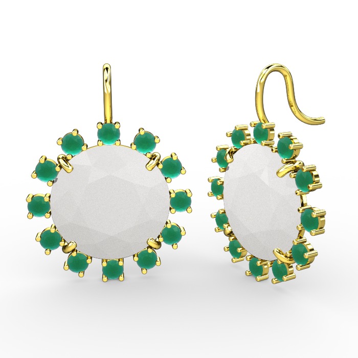 Kök zümrüt ve beyaz akrilik 14 ayar altın küpe