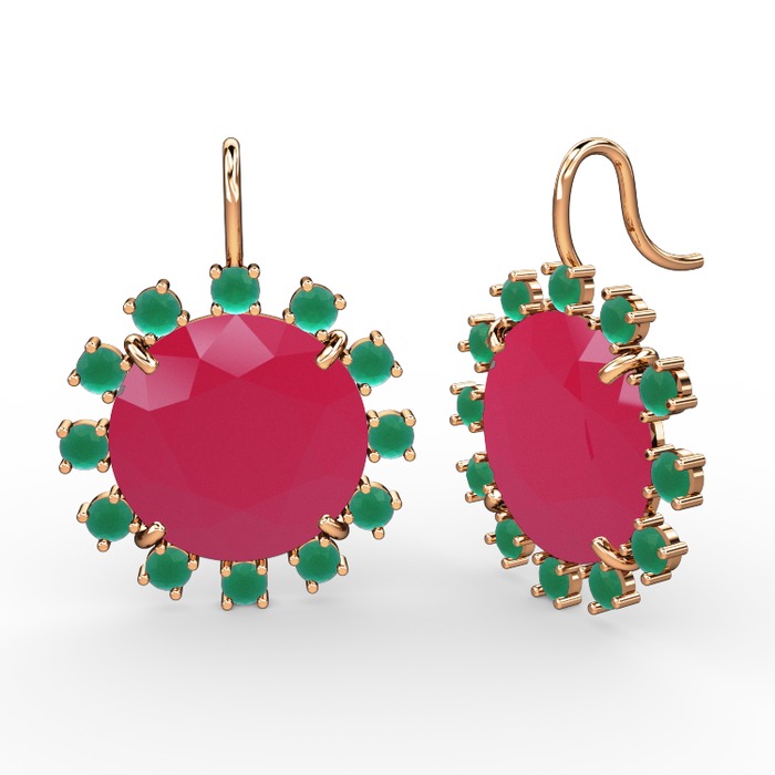 Kök zümrüt ve neon pembe akrilik 925 ayar rose altın kaplama gümüş küpe
