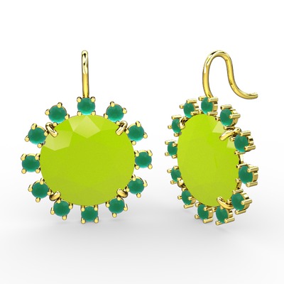 Kök zümrüt ve neon sarı akrilik 8 ayar altın küpe