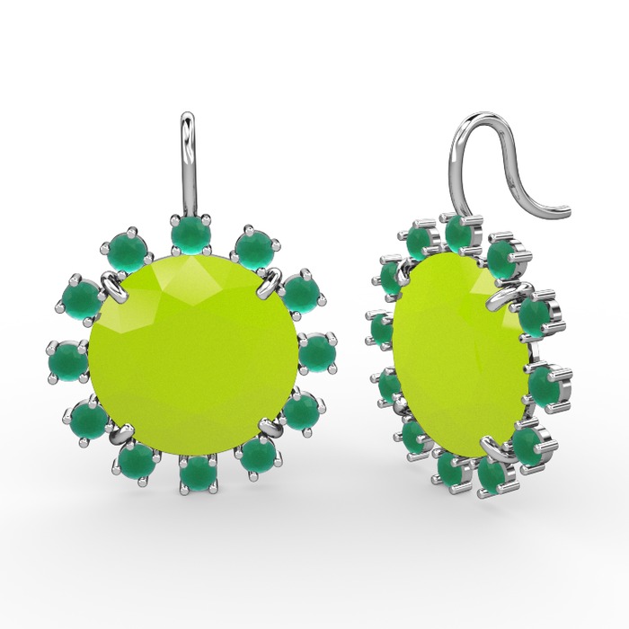 Kök zümrüt ve neon sarı akrilik 925 ayar gümüş küpe