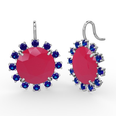 Lab safir ve neon pembe akrilik 8 ayar beyaz altın küpe