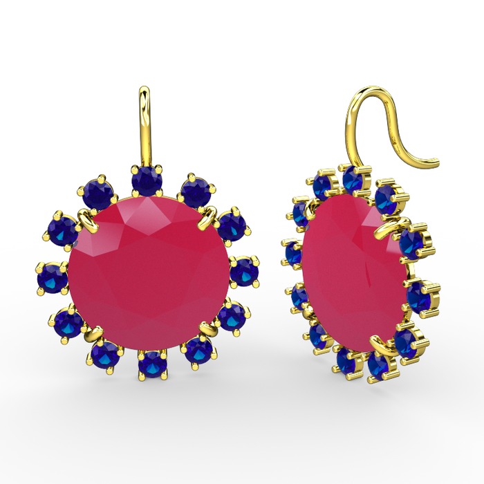 Lab safir ve neon pembe akrilik 925 ayar altın kaplama gümüş küpe