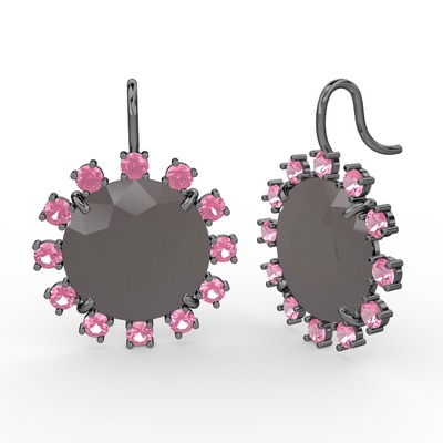 Pembe kuvars ve füme akrilik 925 ayar siyah rodyum kaplama gümüş küpe