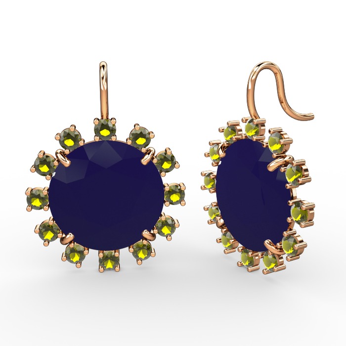 Peridot ve lacivert akrilik 14 ayar rose altın küpe