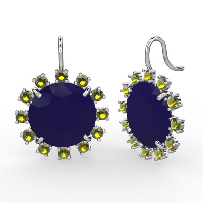 Peridot ve lacivert akrilik 925 ayar gümüş küpe