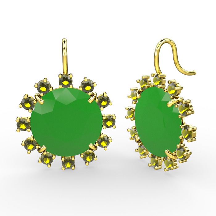 Peridot ve neon yeşil akrilik 14 ayar altın küpe