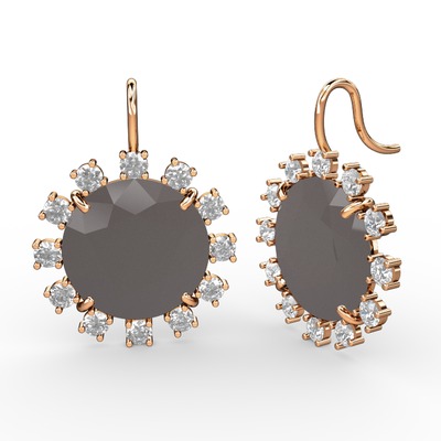 Pırlanta ve füme akrilik 8 ayar rose altın küpe (5.76 karat)