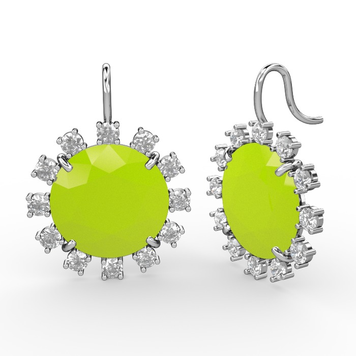 Pırlanta ve neon sarı akrilik 18 ayar beyaz altın küpe (5.76 karat)