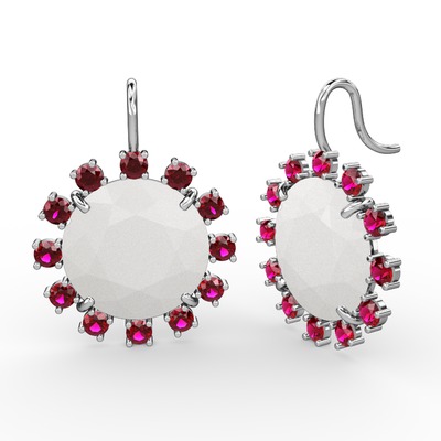 Rodolit garnet ve beyaz akrilik 18 ayar beyaz altın küpe