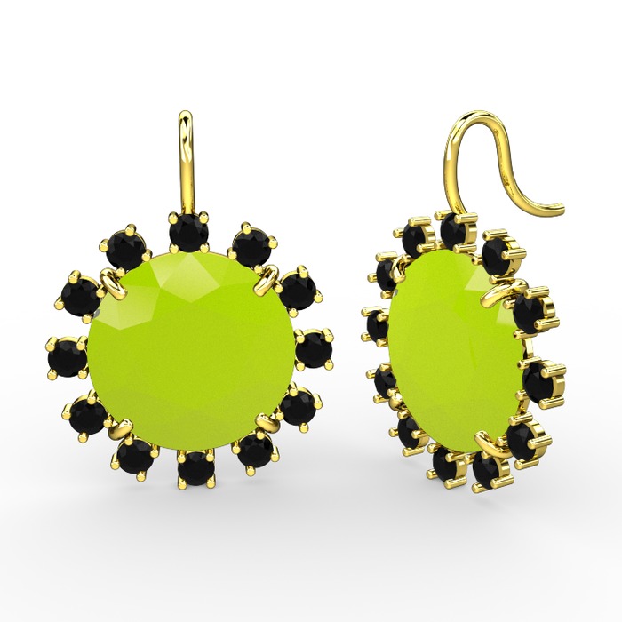 Siyah zirkon ve neon sarı akrilik 14 ayar altın küpe