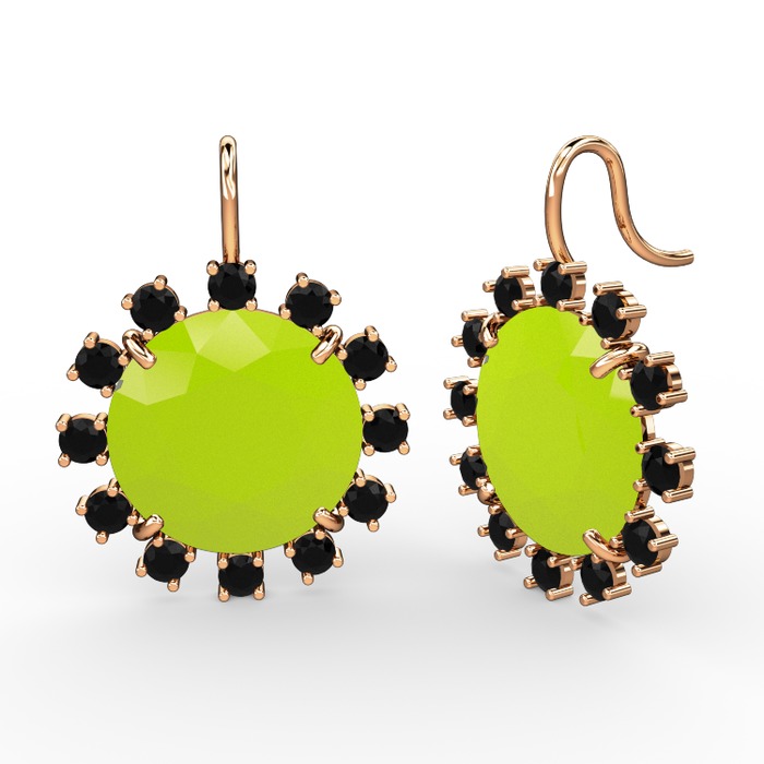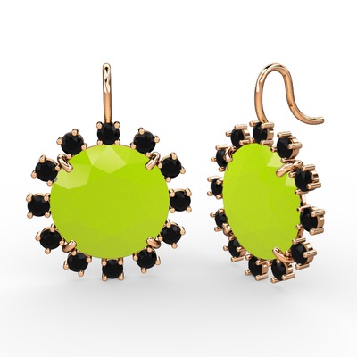 Siyah zirkon ve neon sarı akrilik 925 ayar rose altın kaplama gümüş küpe