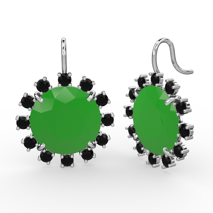 Siyah zirkon ve neon yeşil akrilik 18 ayar beyaz altın küpe