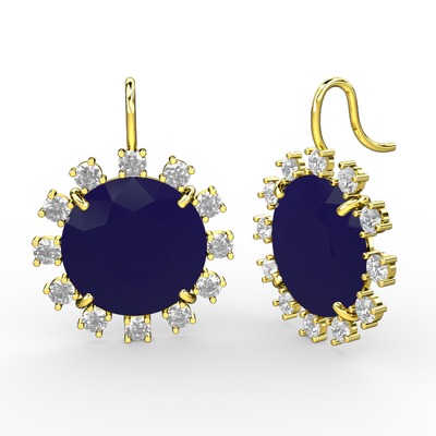 Swarovski ve lacivert akrilik 925 ayar altın kaplama gümüş küpe