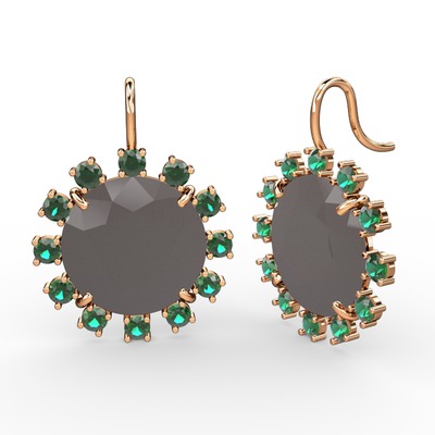 Yeşil kuvars ve füme akrilik 14 ayar rose altın küpe