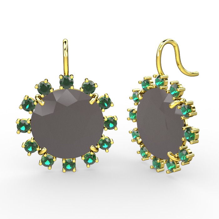 Yeşil kuvars ve füme akrilik 925 ayar altın kaplama gümüş küpe
