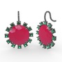 Yeşil kuvars ve neon pembe akrilik 925 ayar siyah rodyum kaplama gümüş küpe