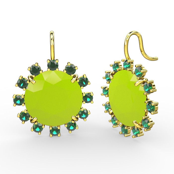 Yeşil kuvars ve neon sarı akrilik 14 ayar altın küpe