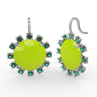 Yeşil kuvars ve neon sarı akrilik 18 ayar beyaz altın küpe