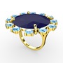 Lacivert akrilik ve akuamarin 925 ayar altın kaplama gümüş yüzük