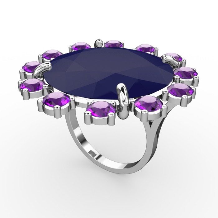 Lacivert akrilik ve ametist 14 ayar beyaz altın yüzük