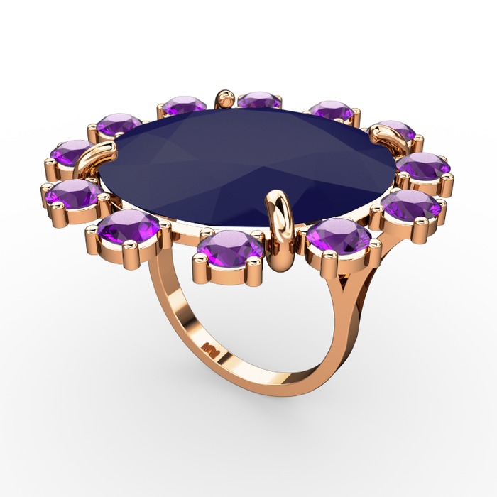 Lacivert akrilik ve ametist 8 ayar rose altın yüzük