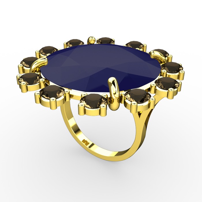 Lacivert akrilik ve dumanlı kuvars 8 ayar altın yüzük