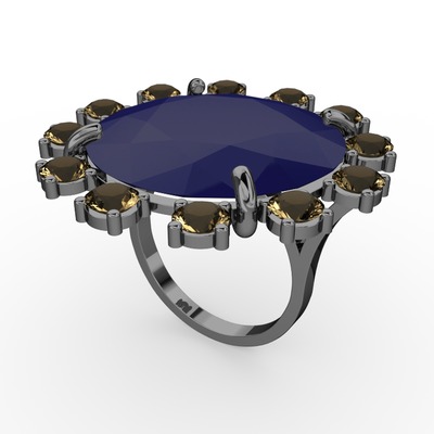 Lacivert akrilik ve dumanlı kuvars 925 ayar siyah rodyum kaplama gümüş yüzük
