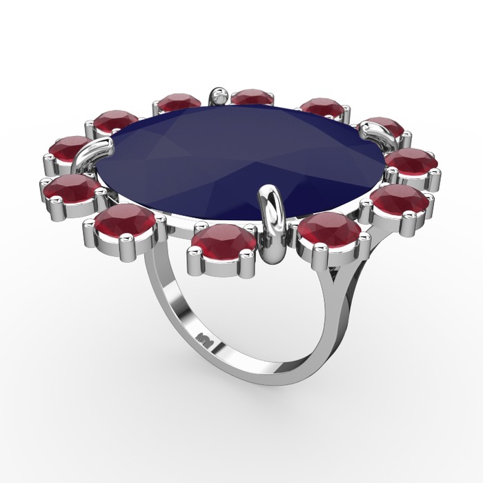Lacivert akrilik ve kök yakut 14 ayar beyaz altın yüzük