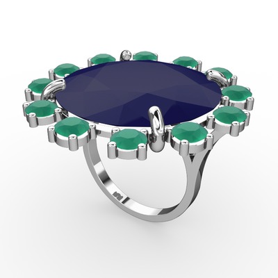 Lacivert akrilik ve kök zümrüt 14 ayar beyaz altın yüzük