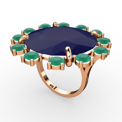 Lacivert akrilik ve kök zümrüt 8 ayar rose altın yüzük