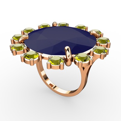 Lacivert akrilik ve peridot 18 ayar rose altın yüzük