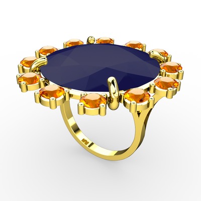 Lacivert akrilik ve sitrin 8 ayar altın yüzük