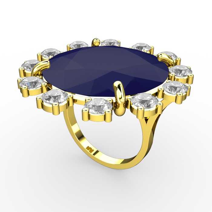 Lacivert akrilik ve swarovski 8 ayar altın yüzük