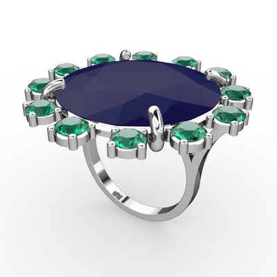 Lacivert akrilik ve yeşil kuvars 14 ayar beyaz altın yüzük