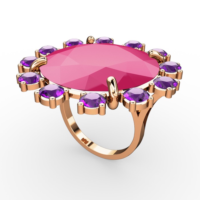 Neon pembe akrilik ve ametist 8 ayar rose altın yüzük