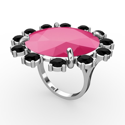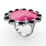 Neon pembe akrilik ve siyah zirkon 14 ayar beyaz altın yüzük