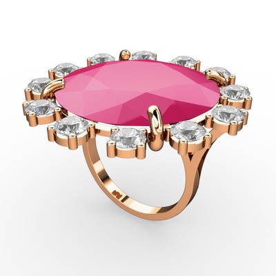 Neon pembe akrilik ve swarovski 18 ayar rose altın yüzük