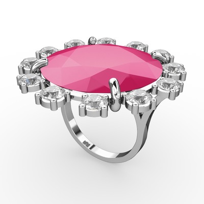 Neon pembe akrilik ve swarovski 925 ayar gümüş yüzük