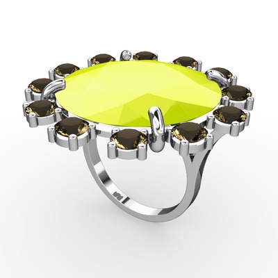 Neon sarı akrilik ve dumanlı kuvars 925 ayar gümüş yüzük