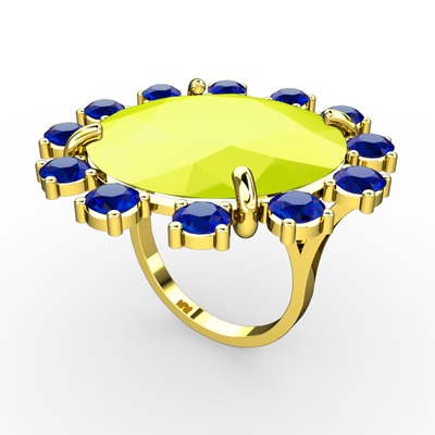 Neon sarı akrilik ve lab safir 18 ayar altın yüzük