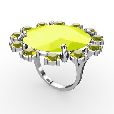 Neon sarı akrilik ve peridot 18 ayar beyaz altın yüzük