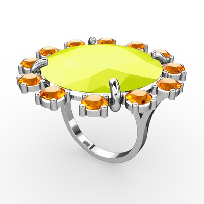 Neon sarı akrilik ve sitrin 14 ayar beyaz altın yüzük