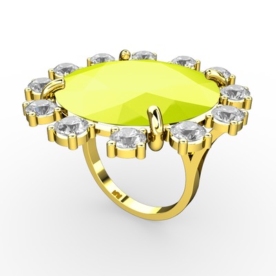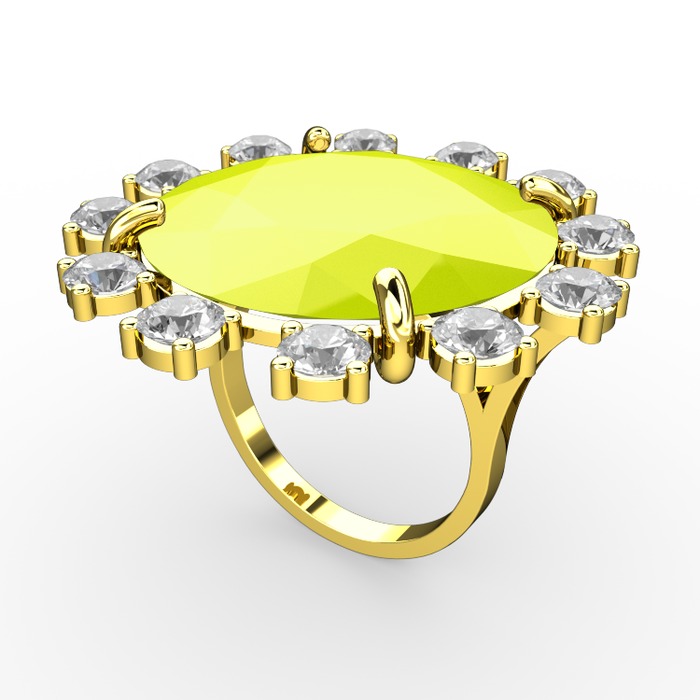 Neon sarı akrilik ve swarovski 925 ayar altın kaplama gümüş yüzük