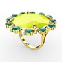Neon sarı akrilik ve yeşil kuvars 18 ayar altın yüzük